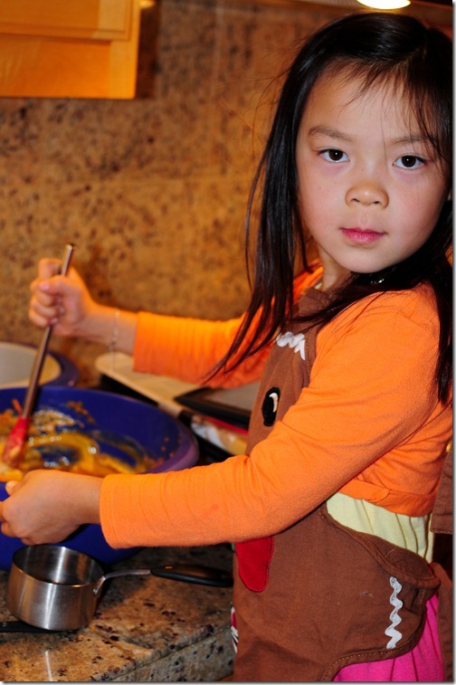 At least the girls had fun whipping them up. Since we were making two cakes, they each got to do everything in their very own bowls and pans.