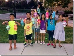 Then we had a backyard-movie party with classmates a few days later. That was fun! (Ree white, Ro pink)